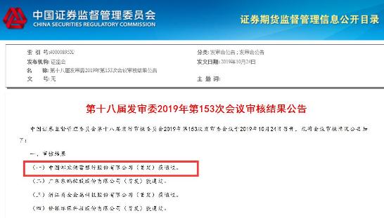 •   中新经纬客户端10月24日电 据证监会官网消息,24日,第十八届发审委2019年第153次会议审核结果公告显示,中国邮政储蓄银行股份有限公司顺利过会。至此,在“A+H”股版图上,国有六大行齐聚。邮储银行也成为年内募资规模最大的新股。