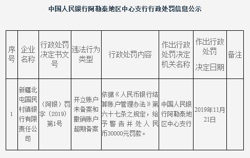 哈密红星国民村镇银行信贷资金被挪用被罚
