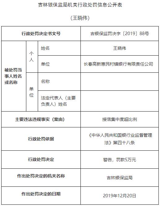 长春高新惠民村镇银行违法遭罚