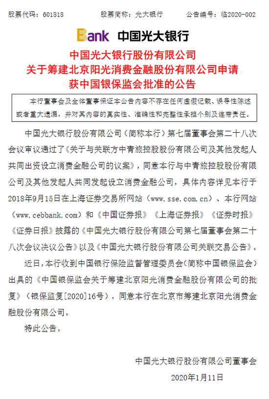 光大银行出资50亿筹建理财子公司获得银保监会批准