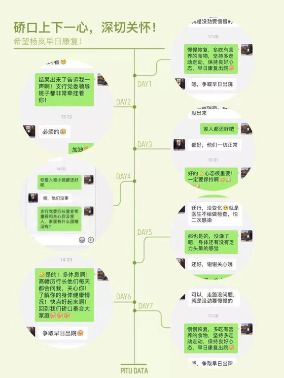 三是鼓励多、心态好。每日向单位和家人报平安是我在住院期间最幸福的事,来自家人的问候、来自单位领导的慰问、来自网点同事的关心、来自医护人员的陪伴,以及病友们一个又一个转好的消息,都是我一路走来最大的动力。