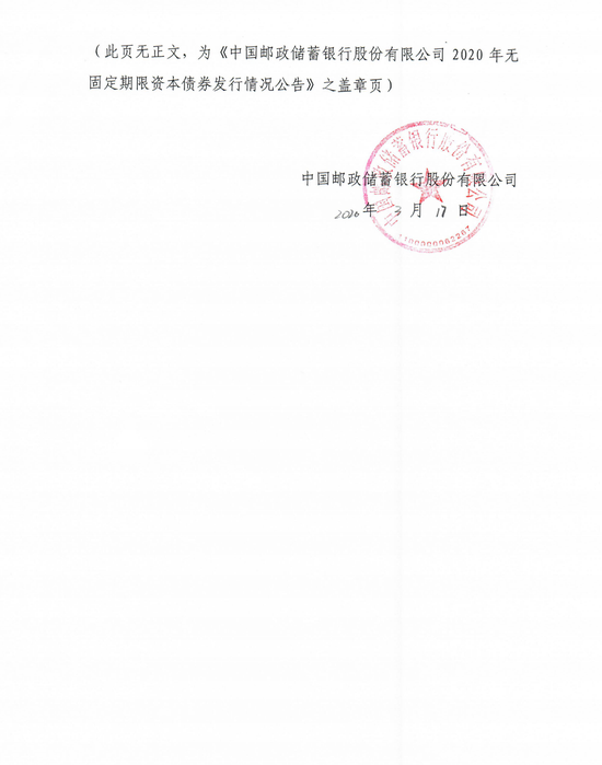 • 邮储银行成功发行300亿元境内无固定期限资本债券