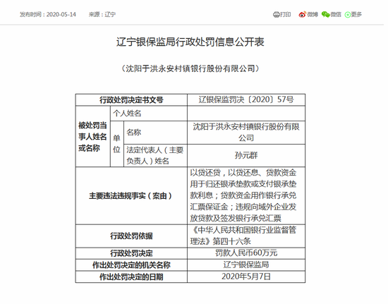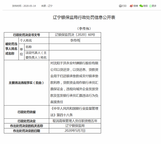 辽宁金融监管局对兴业银行沈阳分行行政处罚信息