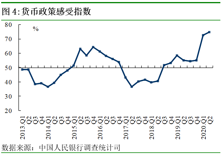 2.货币政策感受指数:反映银行家对货币政策感受程度的指数。该指数的计算方法是在全部接受调查的银行家中,先分别计算认为本季货币政策“偏松”和“适度”的占比,再分别赋予权重1和0.5后求和得出。