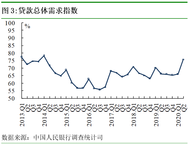贷款总体需求指数为75.8%,比上季提高9.8个百分点,比上年同期提高9.5个百分点。分行业看,制造业贷款需求指数为70.6%,比上季提高5.0个百分点;基础设施贷款需求指数为69.7%,比上季提高7.4个百分点。分企业规模看,大型企业贷款需求指数为60.7%,比上季提高1.0个百分点;中型企业为66.9%,比上季提高4.3个百分点;小微企业为78.6%,比上季提高10.0个百分点。