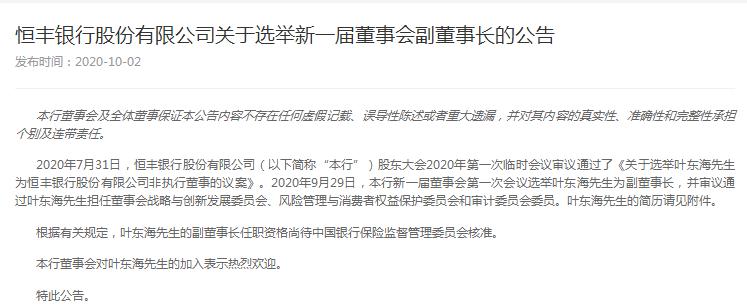 恒丰银行资金运营中心获批筹建