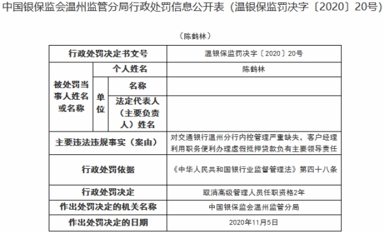 温州银行绍兴分行原行长陈汉被查