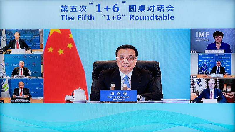 李克强同主要国际经济机构负责人举行第五次“1+6”圆桌对话会