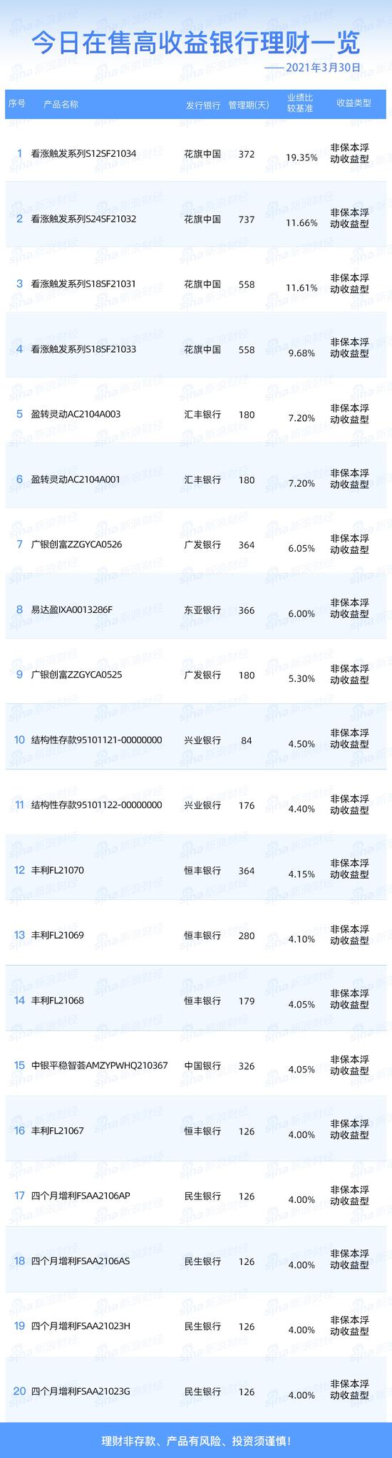 银行30日在售高收益理财产品一览