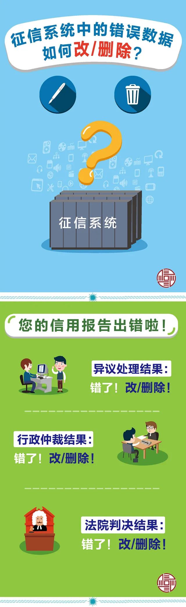 • 您知道征信系统中的错误数据如何改/删除吗?今天征信小助手带您复习。