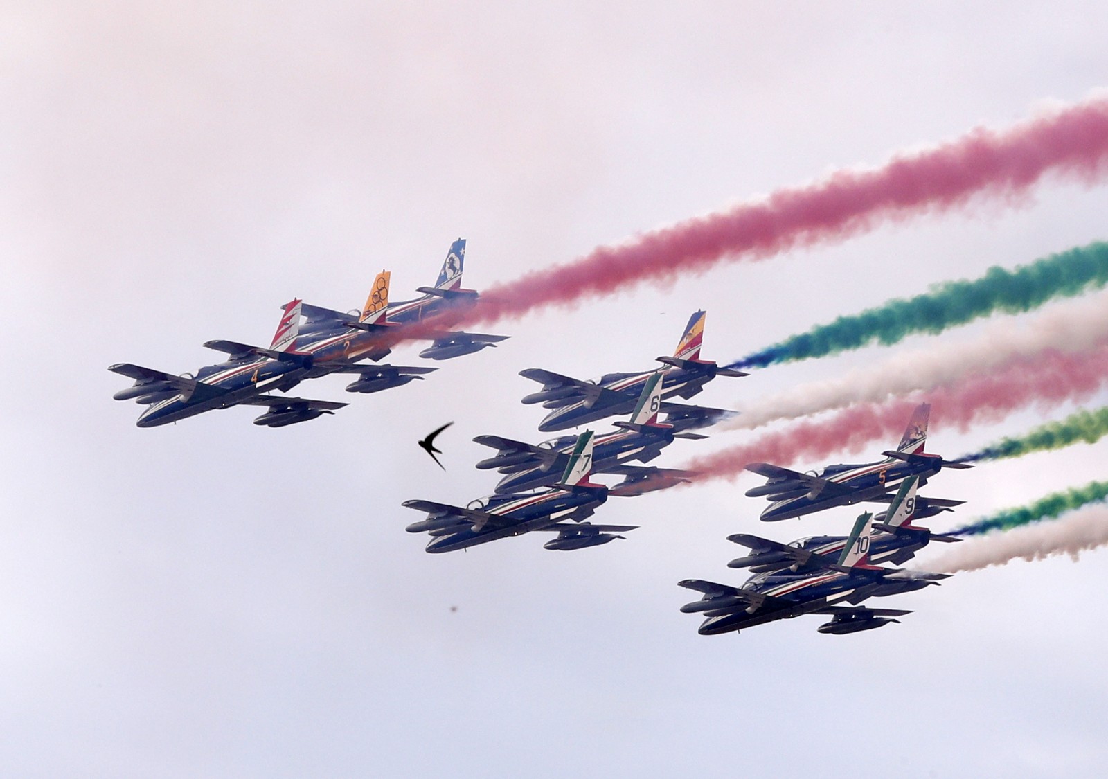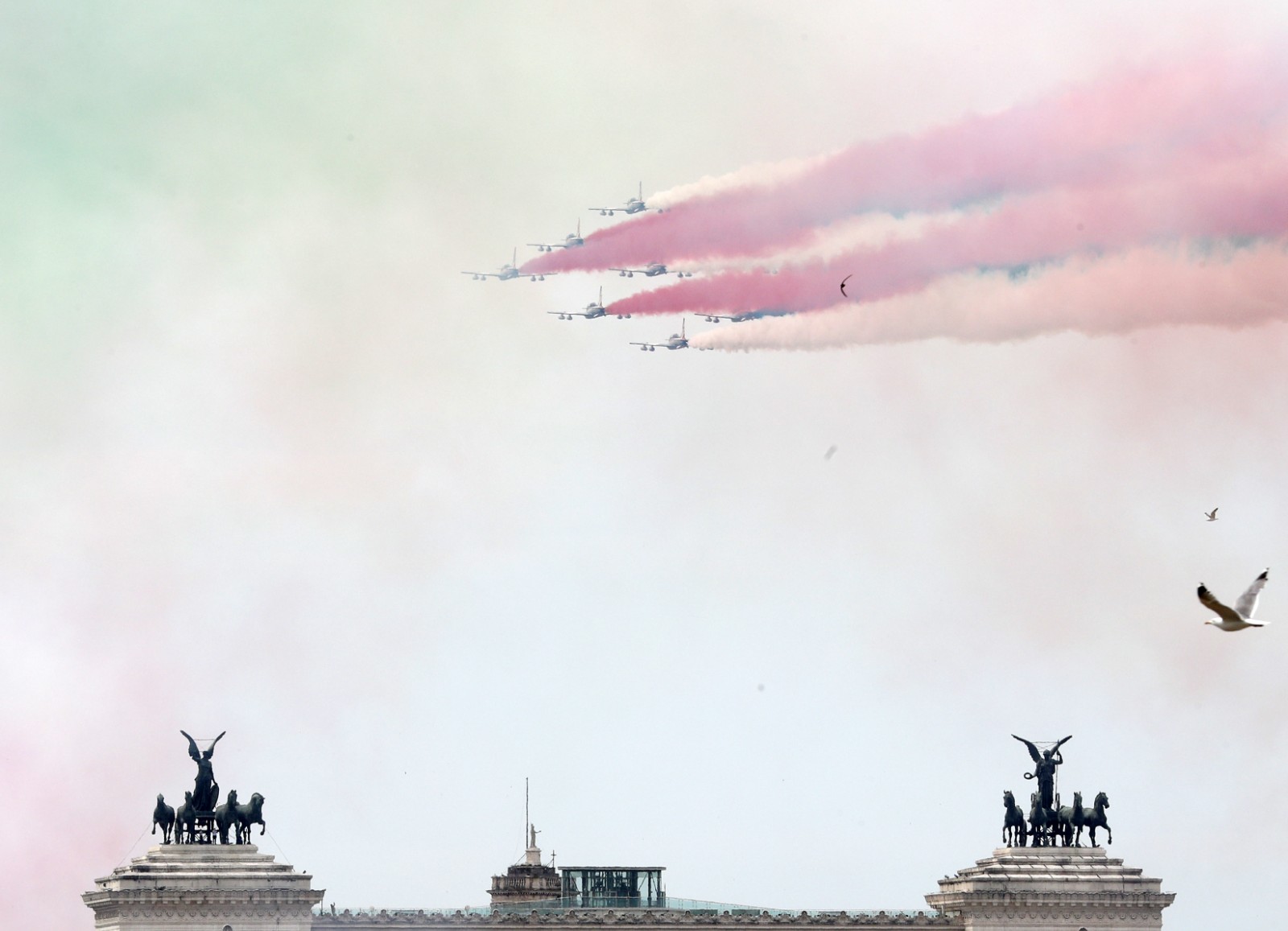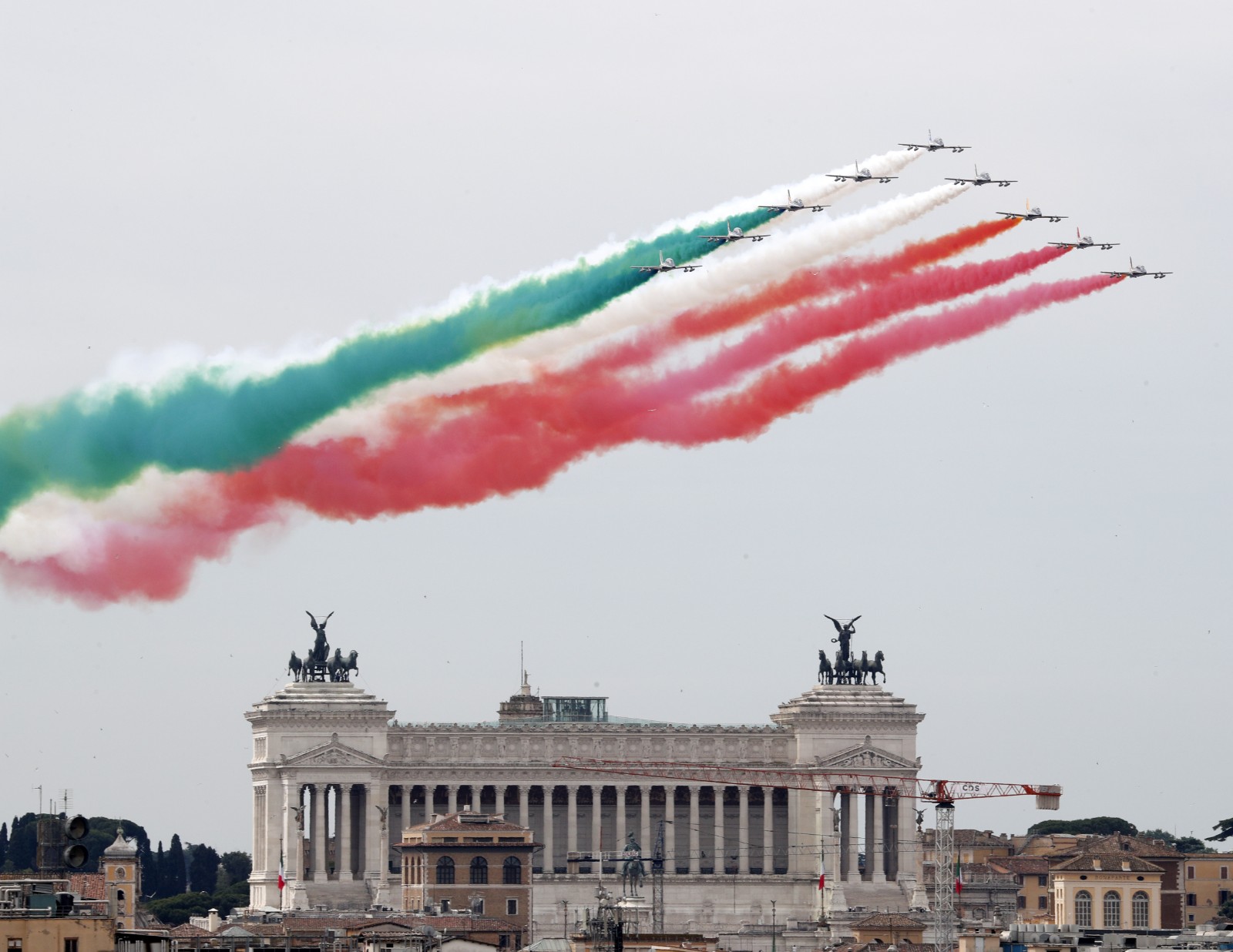 6月2日,意大利“三色箭”飞行表演队在罗马举行的共和国日庆祝仪式上表演。