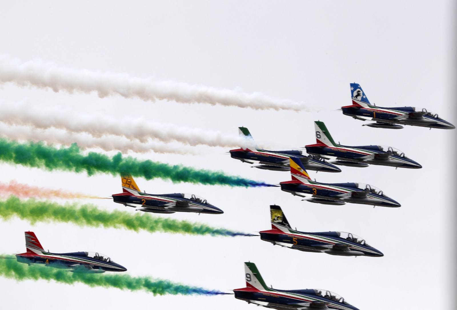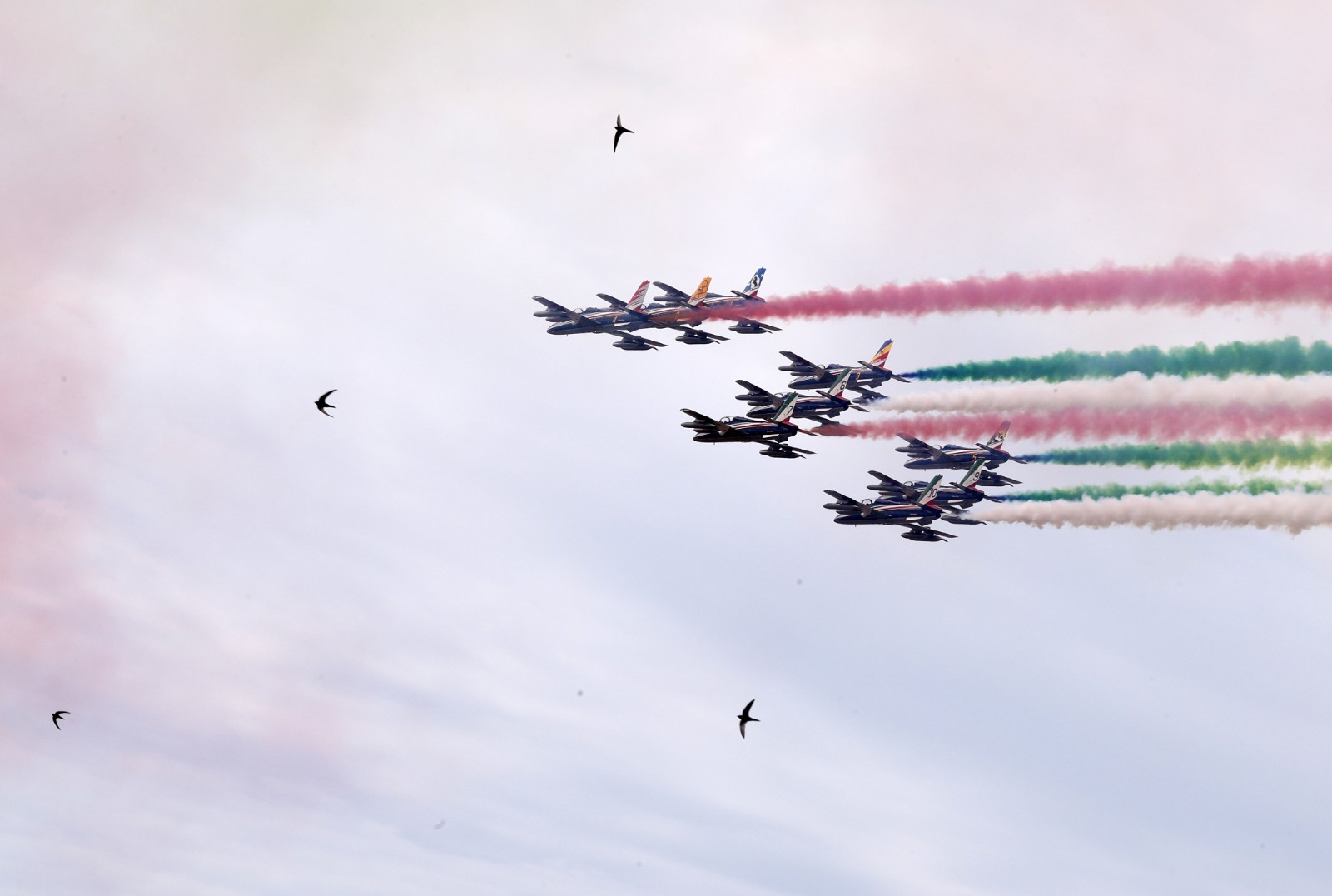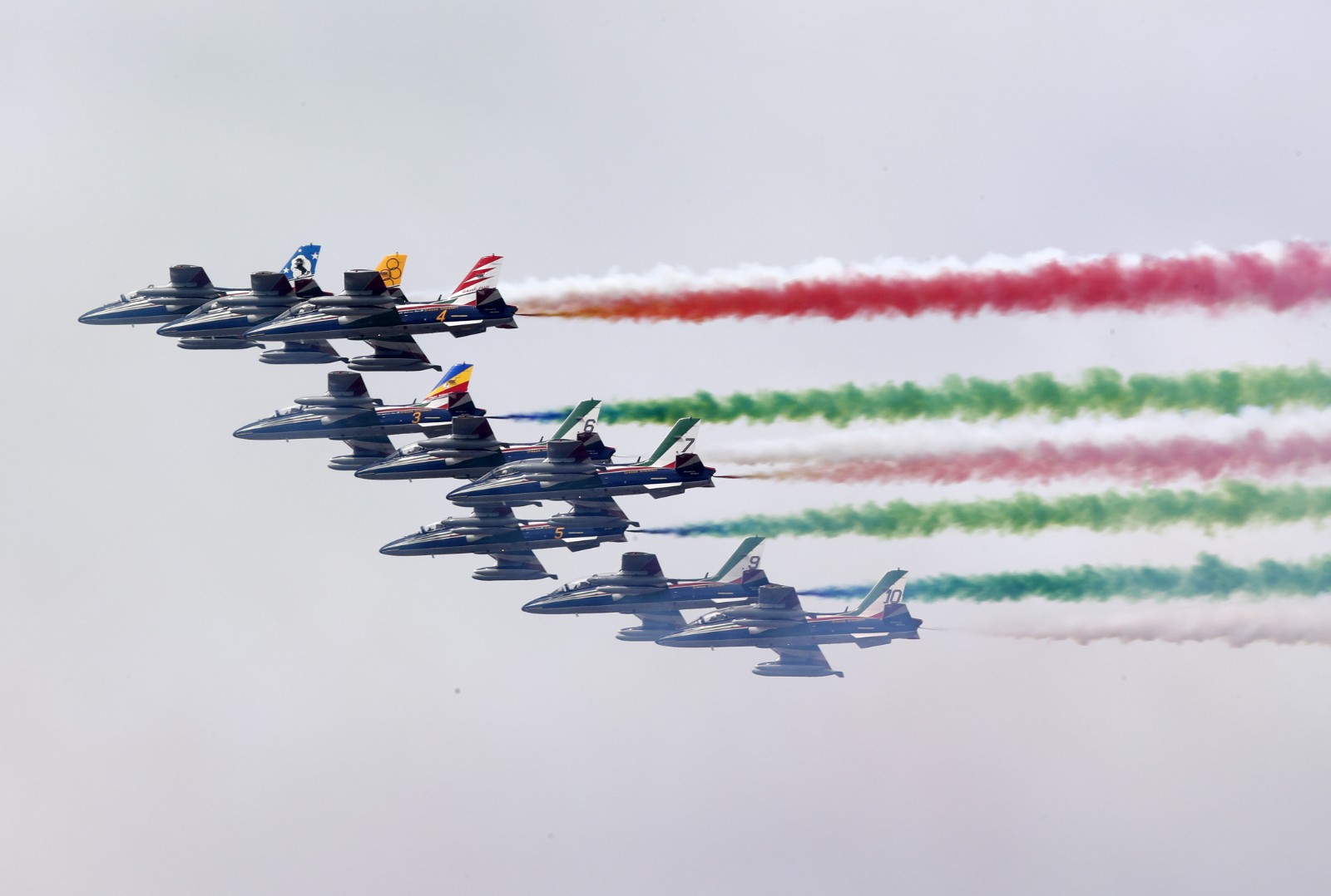 6月2日,意大利“三色箭”飞行表演队在罗马举行的共和国日庆祝仪式上表演。