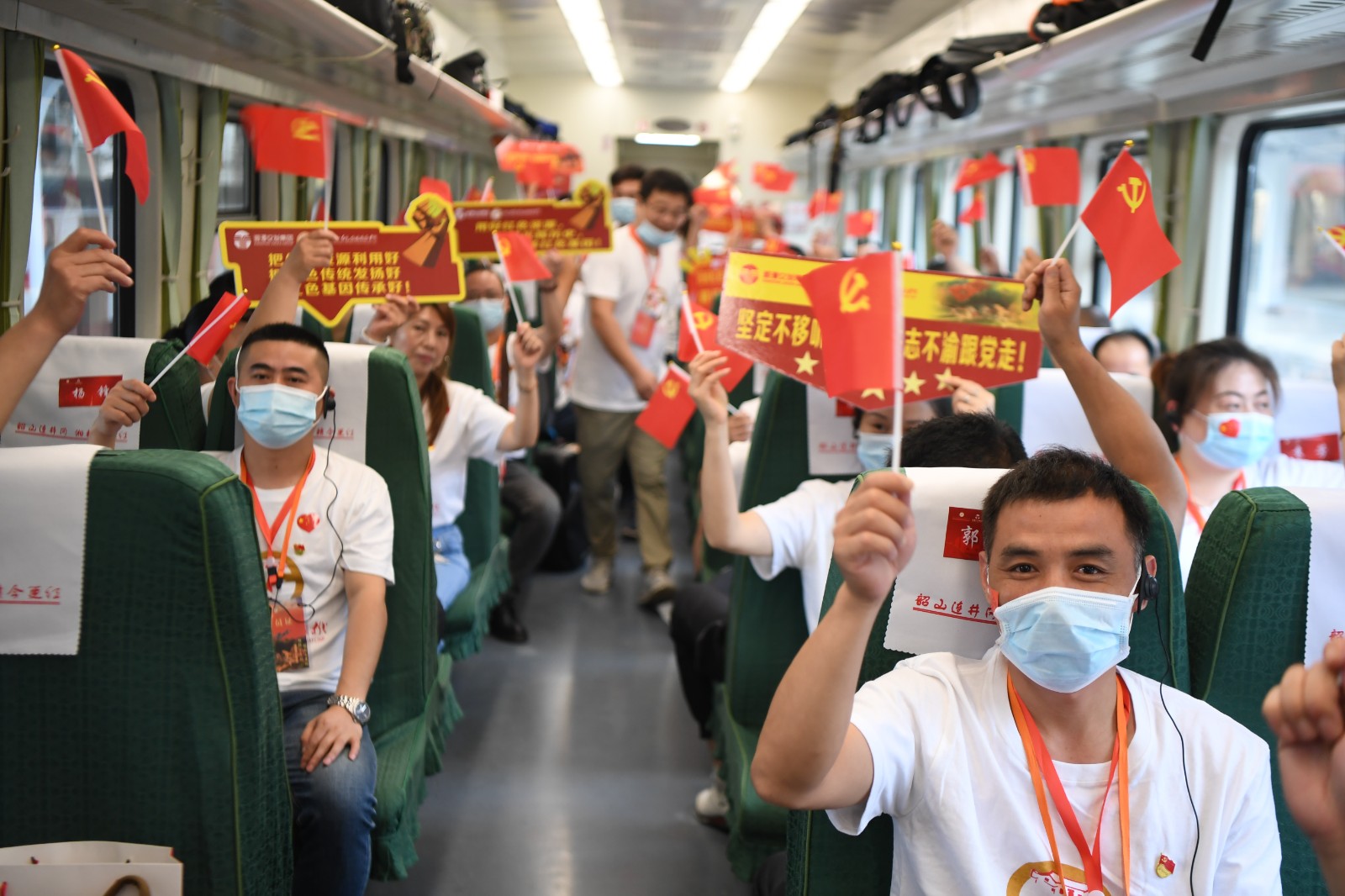 6月18日,首趟韶山至井冈山红色专列从韶山火车站开出。