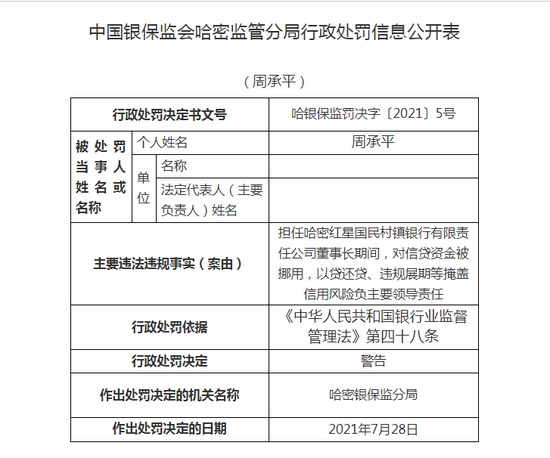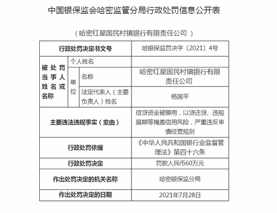 昌吉国民村镇银行违法遭罚