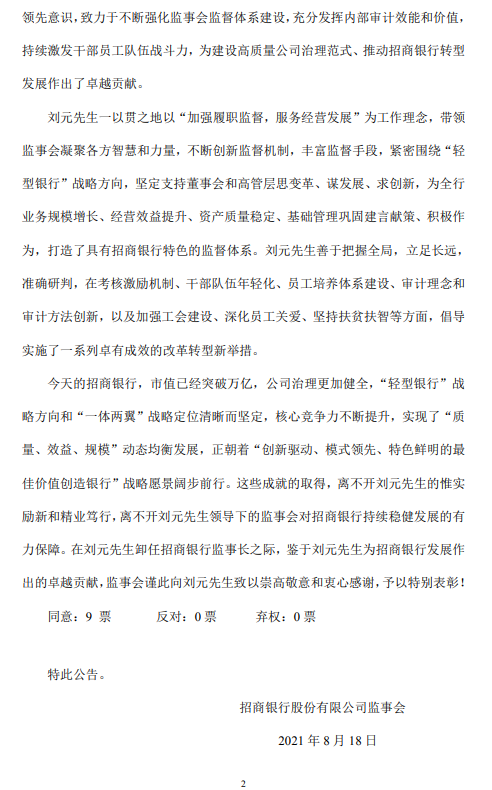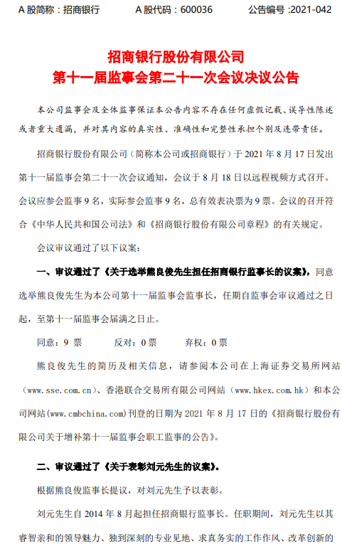 招商银行:选举孙云飞为副董事长 聘任2位副行长
