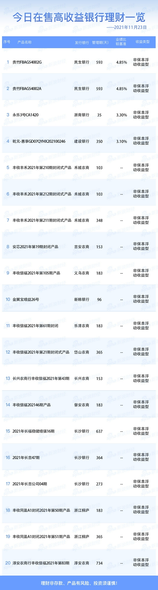 银行23日在售高收益理财产品一览