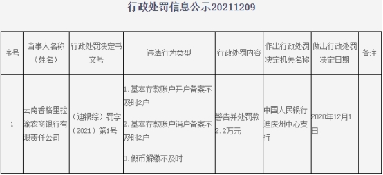 云南威信农商行4宗违规被罚140万