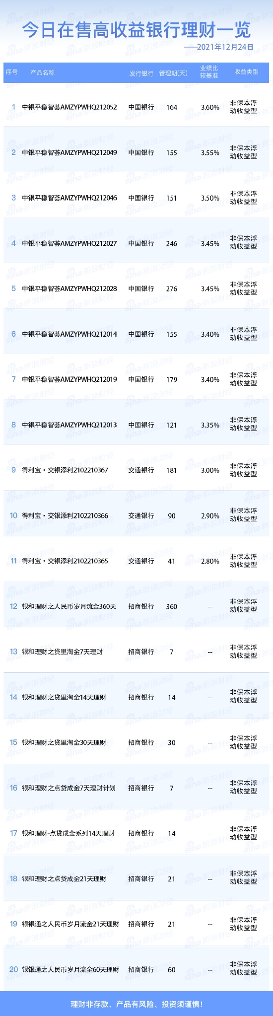 银行24日在售高收益理财产品一览
