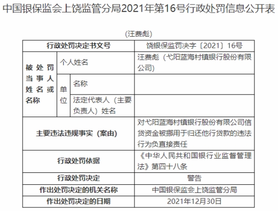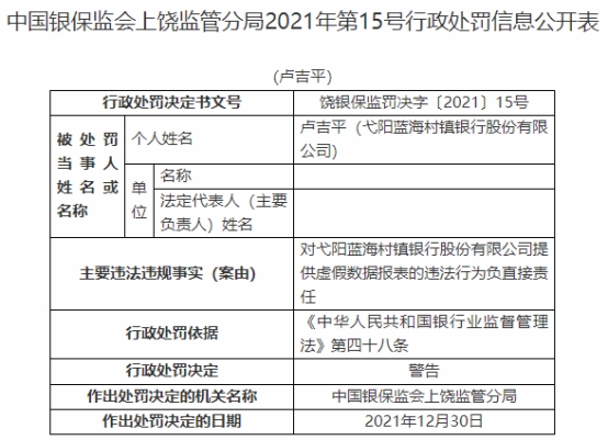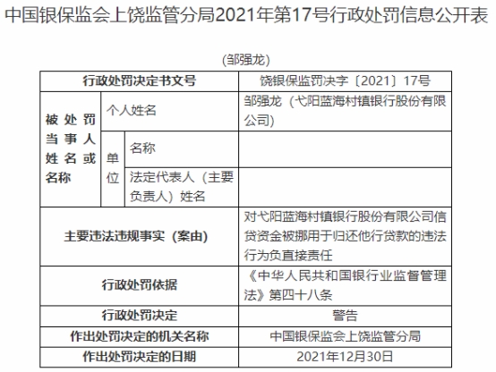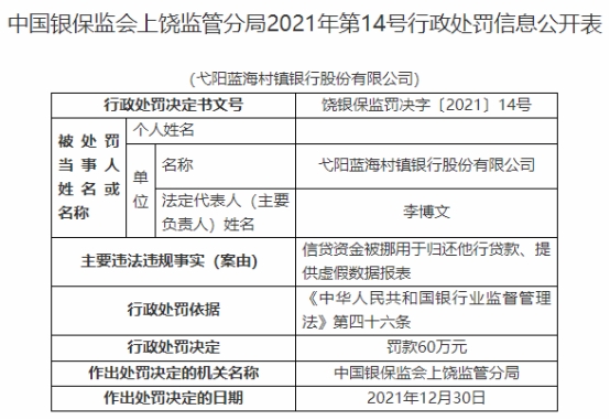 丽江永胜长江村镇银行被罚30万