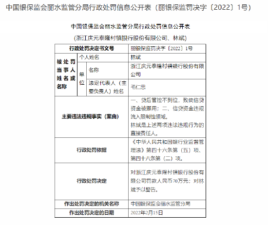 浙江泰隆商业银行7宗违法被罚210万 理财代客操作等