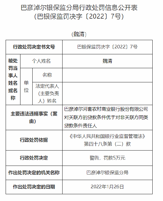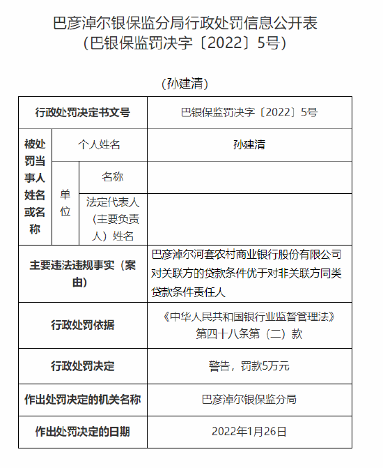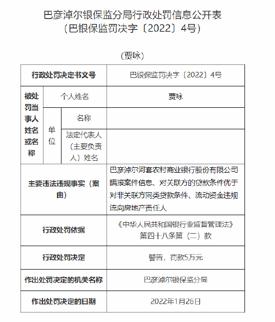 天津农商银行大港支行违法被罚 发放不符合条件贷款