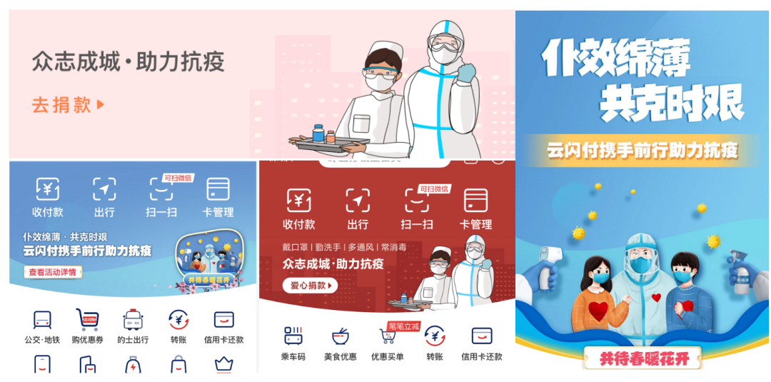 云闪付APP在疫情期间相继上线抗疫服务专区、抗疫爱心捐款渠道等便民服务专区。
