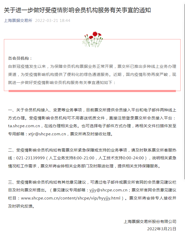 上海票据交易所发布《关于进一步做好受疫情影响会员机构服务有关事宜的通知》