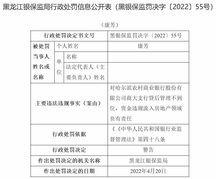 黑龙江一男子骗贷获刑 哈尔滨农商行被骗96.5万