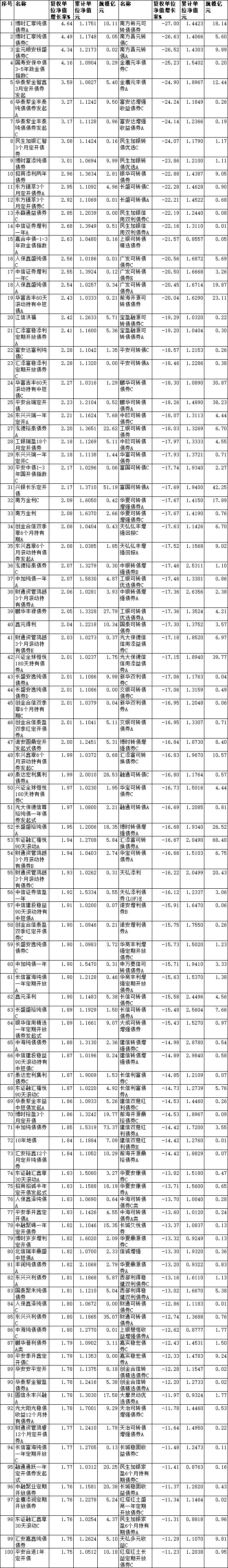 与之相比,下跌债基则主要以可转债基金为主,明显受到股市影响,在前4月里跌幅超过20%的多达19只。如金鹰元丰债券C、金鹰元丰债券A、富安达增强收益债券C、富安达增强收益债券A、民生加银转债优选C、民生加银转债优选A自今年以来频频垫底,上述债基在前4月份的收益率分别为-25.23%、-24.90%、-24.24%、-24.14%、-24.07%、-23.86%。
