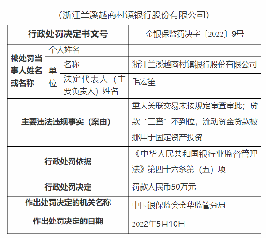 浙江杭州余杭农商行违法被罚 信贷资金被挪用于购房