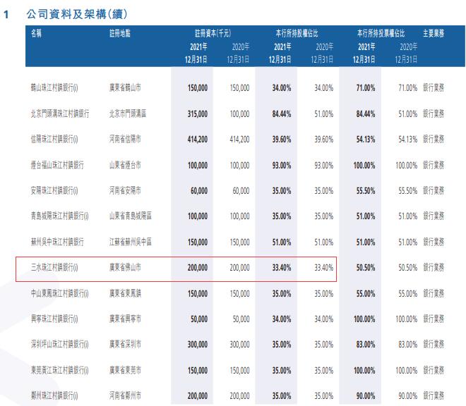 广州农商银行(01551.HK)2021年报显示,三水珠江村镇银行是其附属子公司,广州农商银行持股比例为33.40%。