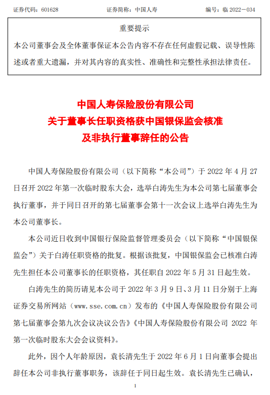中国人寿董事长王滨接受中央纪委国家监委审查调查