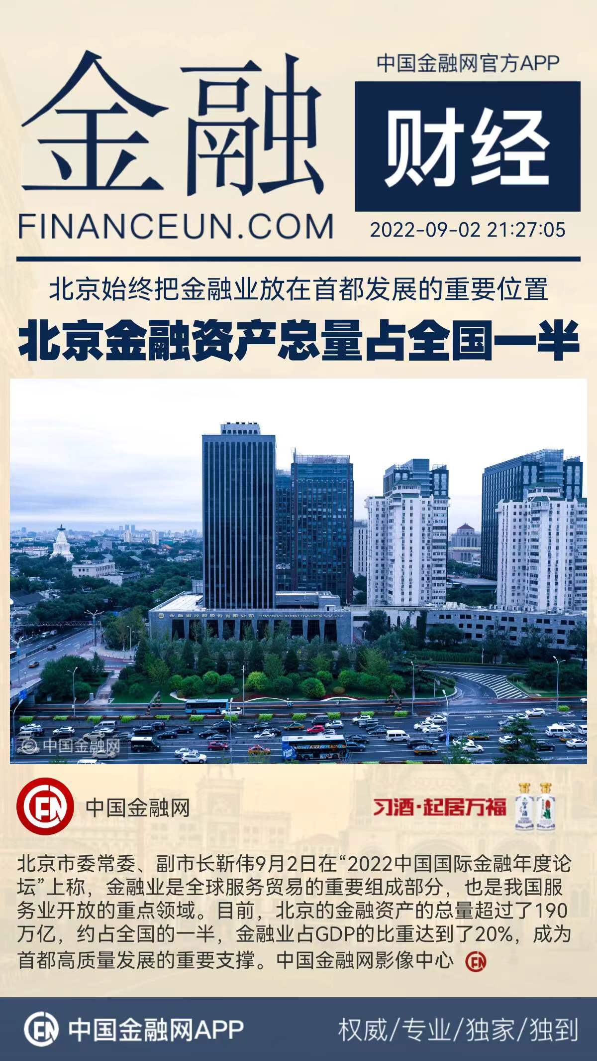 北京市委常委、副市长靳伟9月2日在“2022中国国际金融年度论坛”上称,金融业是全球服务贸易的重要组成部分,也是我国服务业开放的重点领域。目前,北京的金融资产的总量超过了190万亿,约占全国的一半,金融业占GDP的比重达到了20%,成为首都高质量发展的重要支撑。