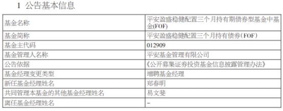 平安基金4只债基增聘基金经理欧阳亮