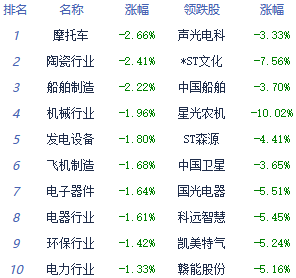 A股市场板块及个股涨跌幅排行