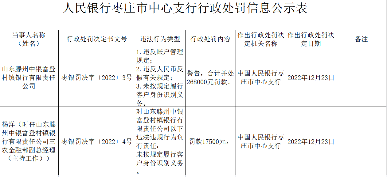 肇东中银富登村镇银行被罚