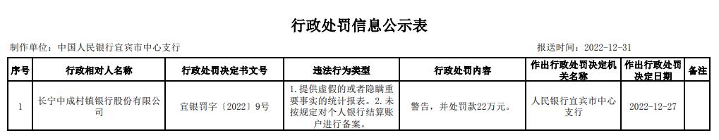 上杭中成村镇银行违规被罚