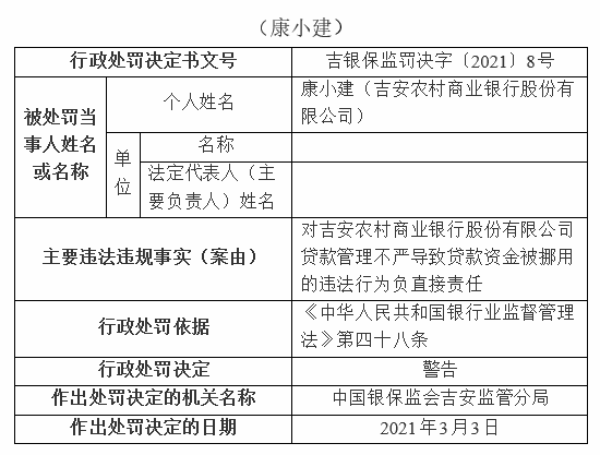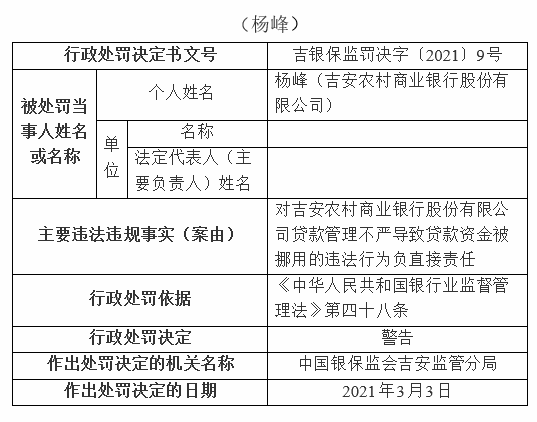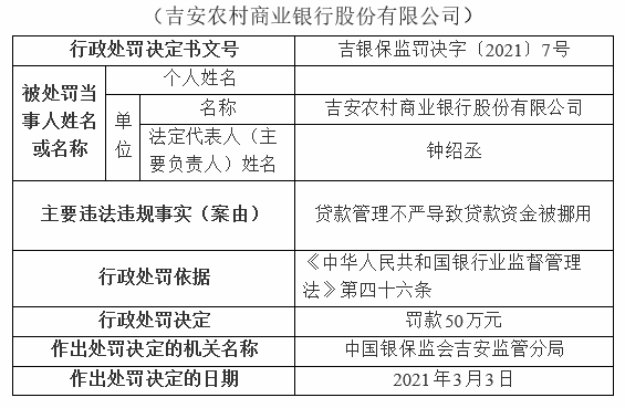 吉安稠州村镇银行违法遭罚