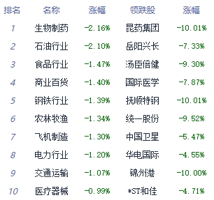 A股市场板块及个股涨跌幅排行