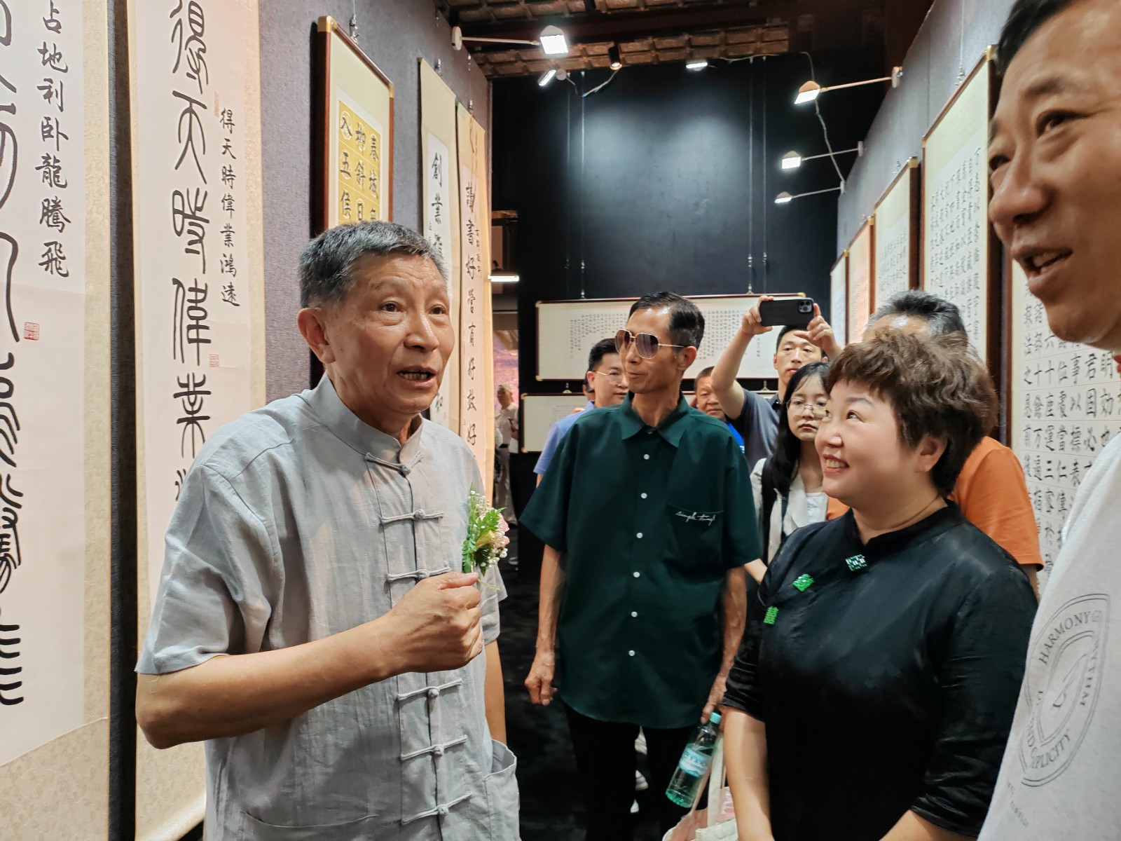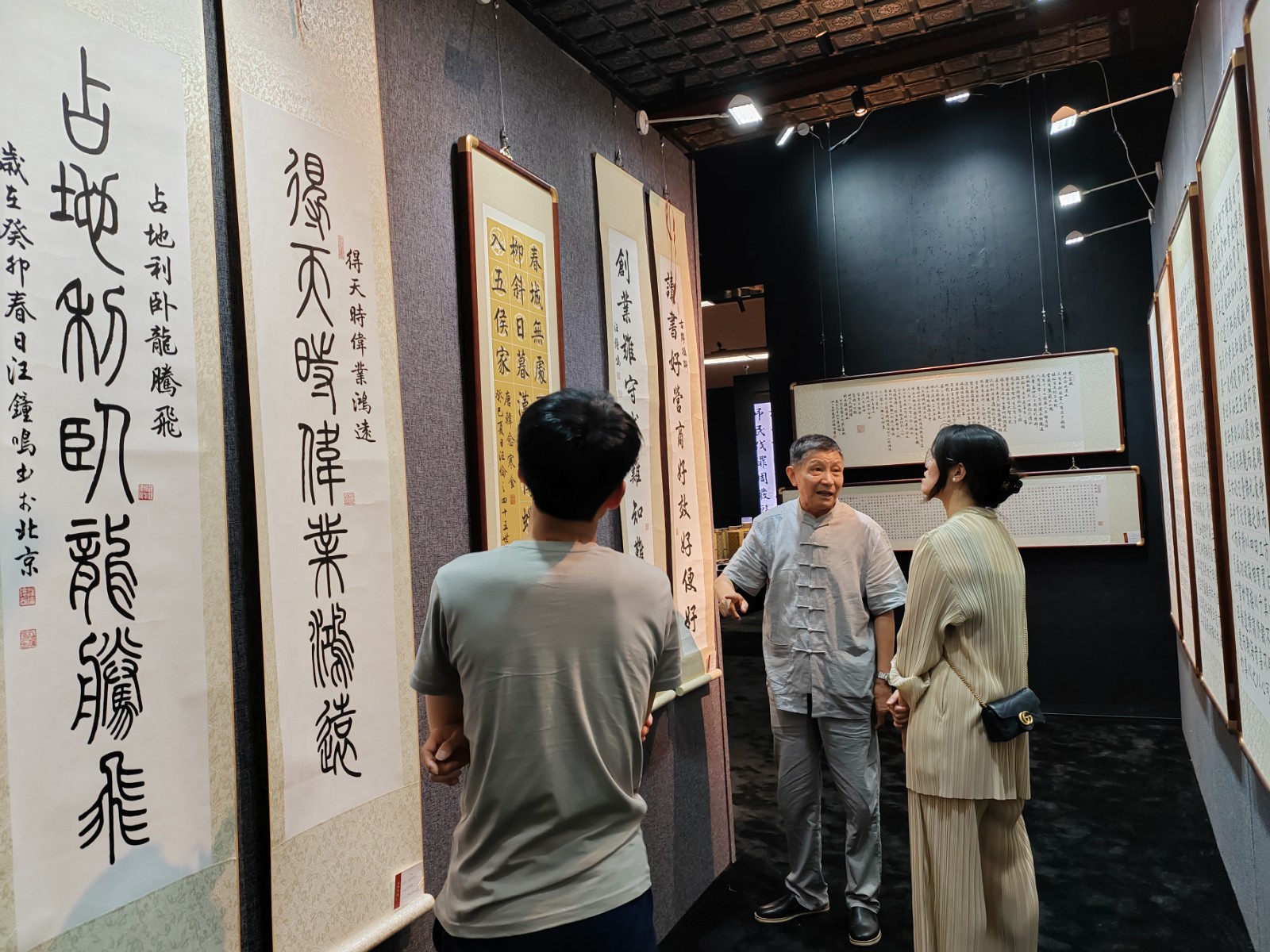 中国金融网首席记者丁宽亮报道 7月8日,著名书法家汪钟鸣书法作品展在北京故宫博物院普度寺隆重举行。汪钟鸣安徽黟县人,唐代汪伦第45代嫡孙,出生书香门第,幼年时受父亲言传教诲,六岁开始临摹研习历代名家书法艺术,经过六十多年勤学苦练,研习临摹国内保存千年书法典藏精品佳作,并对历代著名书法名家各自擅长书体书写技法进行深入研究,不断总结领悟从中汲取优秀精髓。使得汪钟鸣书法艺术达到炉火纯青绝佳境界,此次在故宫博物院展出的作品竟达500幅,是汪钟鸣近半个世纪创作书法艺术精品,作品内容包括历代诗人词人名作及历代名家书法珍品,每件书法作品精彩绝伦完美至臻。参观者对汪老师展出作品都赞不绝口,纷纷点赞。汪钟鸣将中华传统书法行楷、隶篆、草书笔法运用如星云流水一般。其作品雄宏大气,字体敦厚、笔峰隽秀,笔端飘逸,气势如虹。