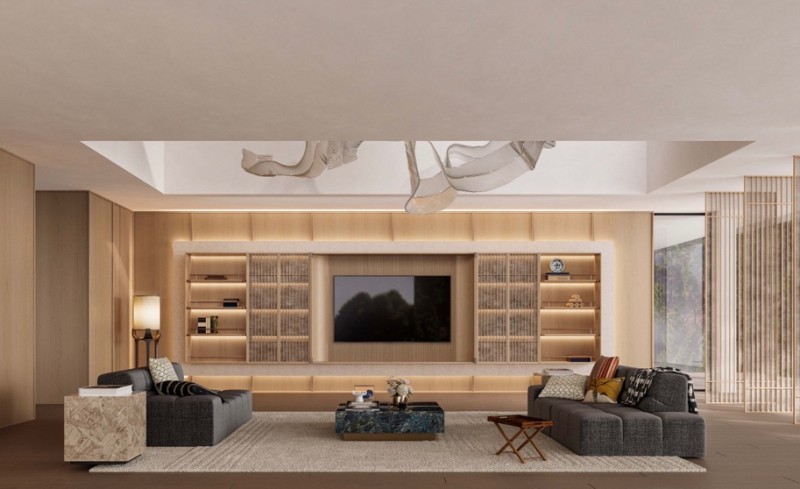 Lamett乐迈石晶大家居空间韵·云岚系列,以质朴木质材料和柔和线条打造新国风全屋美学