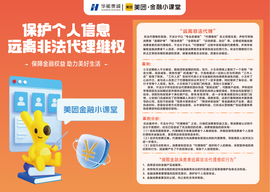 时维九月,序属仲秋,在即将迎来祖国七十六载华诞和中秋佳节之际,华能贵诚信托与美团再度携手,在这个“美”满的季节,“团”圆的季节,相聚大美“贵”阳,精“诚”协作,共同发起以“保障金融权益,助力美好生活”为主题的2025年“金融教育宣传周”活动。