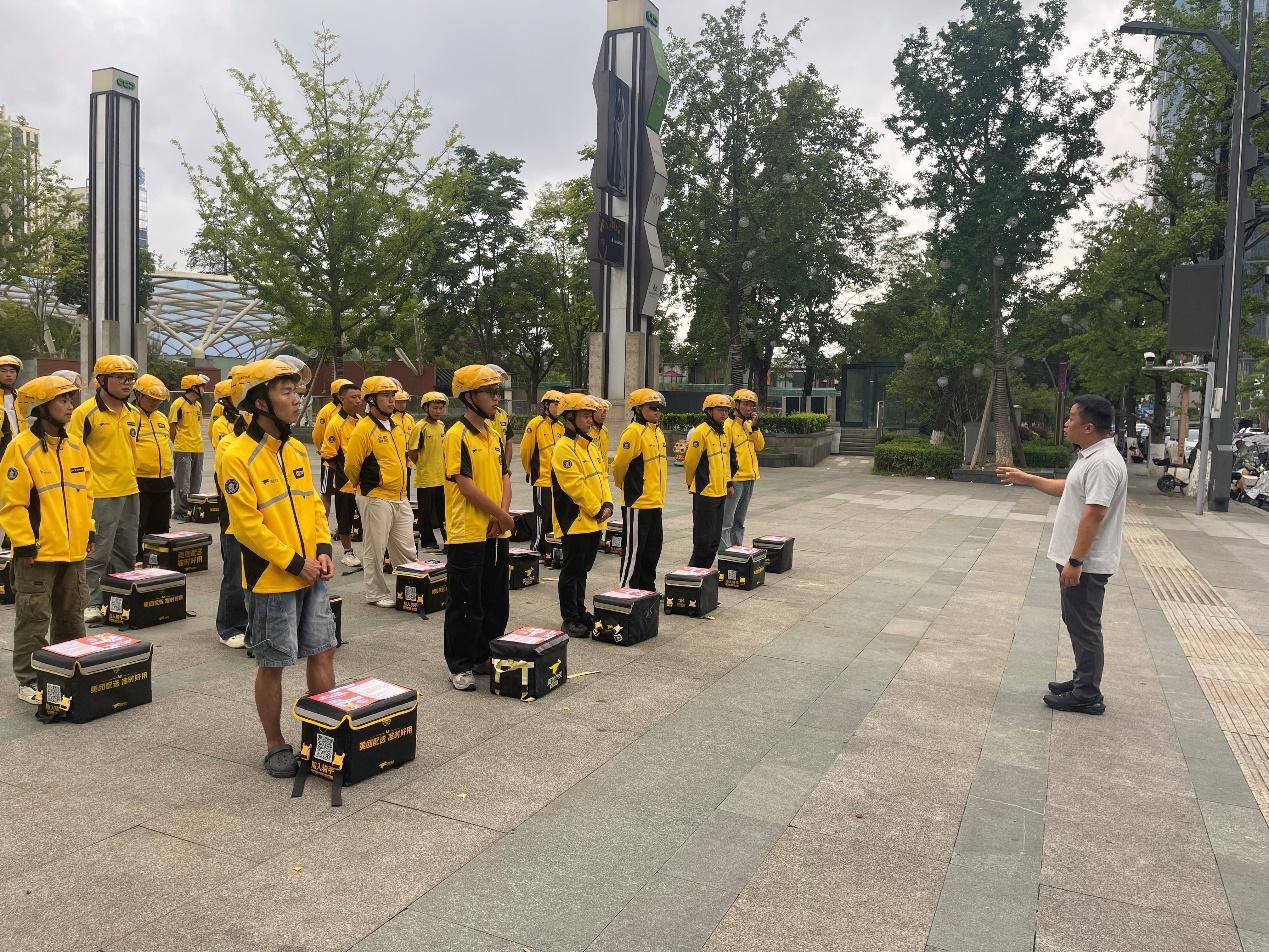华能贵诚信托运营总监胡胜林对骑手小哥代表进行了活动宣导和培训。今年已经是华能贵诚信托与美团第三年携手举办消费者权益保护宣传活动了,胡总首先回顾了年两年活动的良好反响。2023年9月,华能贵诚信托与美团首次相聚贵阳,共同发起了以“汇聚金融力量,共创美好生活”为主题的“金融知识进万家”消费者权益保护活动。在美团平台和各位骑手兄弟的努力下,通过线上的APP、公众号,线下的共享单车、外卖垫餐纸等丰富多彩的形式,推广普及金融消保知识,活动期间每天触达400万各类金融消费群体,实现了将金融知识送进千家万户!2024年9月,双方再次相聚贵阳,共同发起了以“金融为民谱新篇,守护权益防风险”为主题的金融知识普及月活动,同样取得了良好的宣传效果,帮助众多的市民朋友了解金融知识,维护金融权益,守护钱袋子,过好小日子。