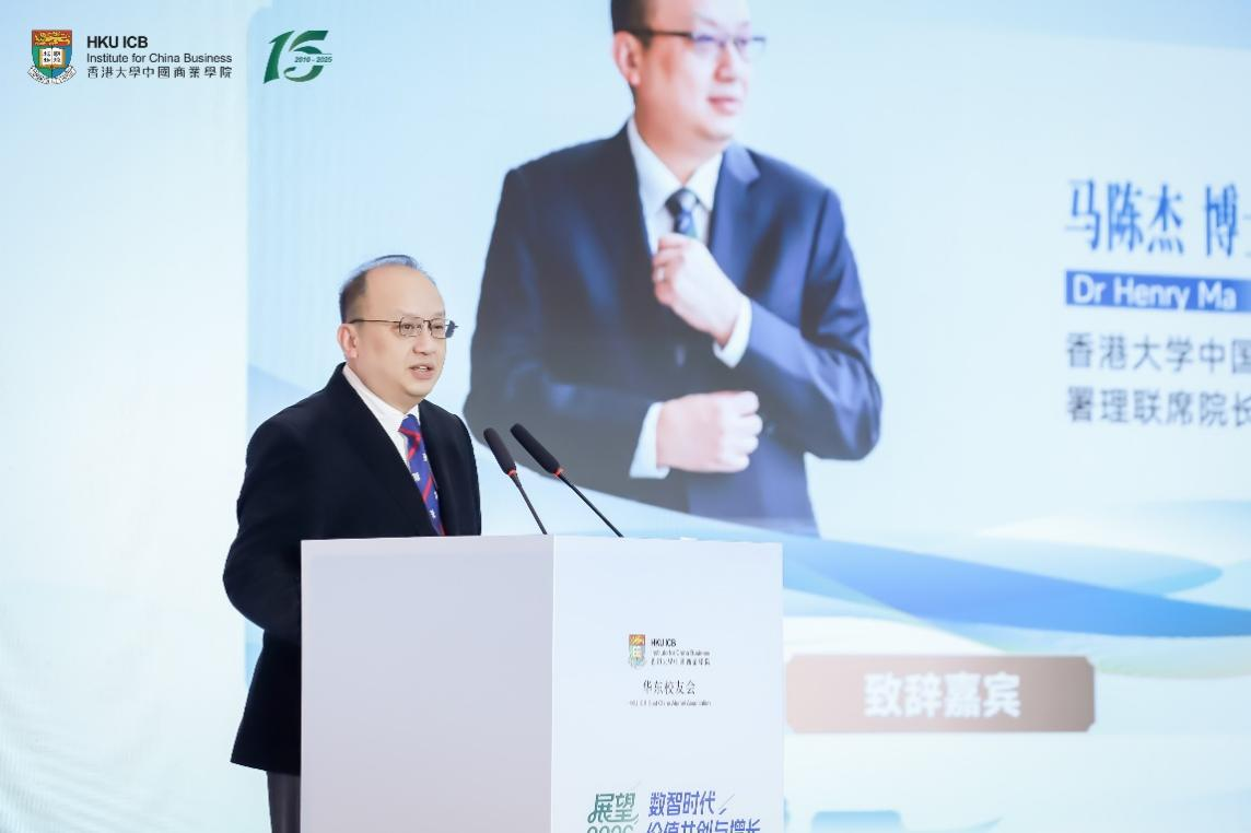 HKU ICB署理联席院长马陈杰博士则从学院战略层面分享了面向未来十年的核心愿景,并提出“三个跨越”战略:一是跨学科,推动人文与自然科学的深度融合;二是跨界,构建政、产、学、研协同生态,加速知识转化与成果落地;三是跨文化,以开放心态构建国际合作网络,帮助中国企业从“走出去”迈向“融进去”。他强调,HKU ICB将在终身学习体系、跨界平台建设与全球网络拓展方面持续发力,为校友提供面向未来的持续能量。