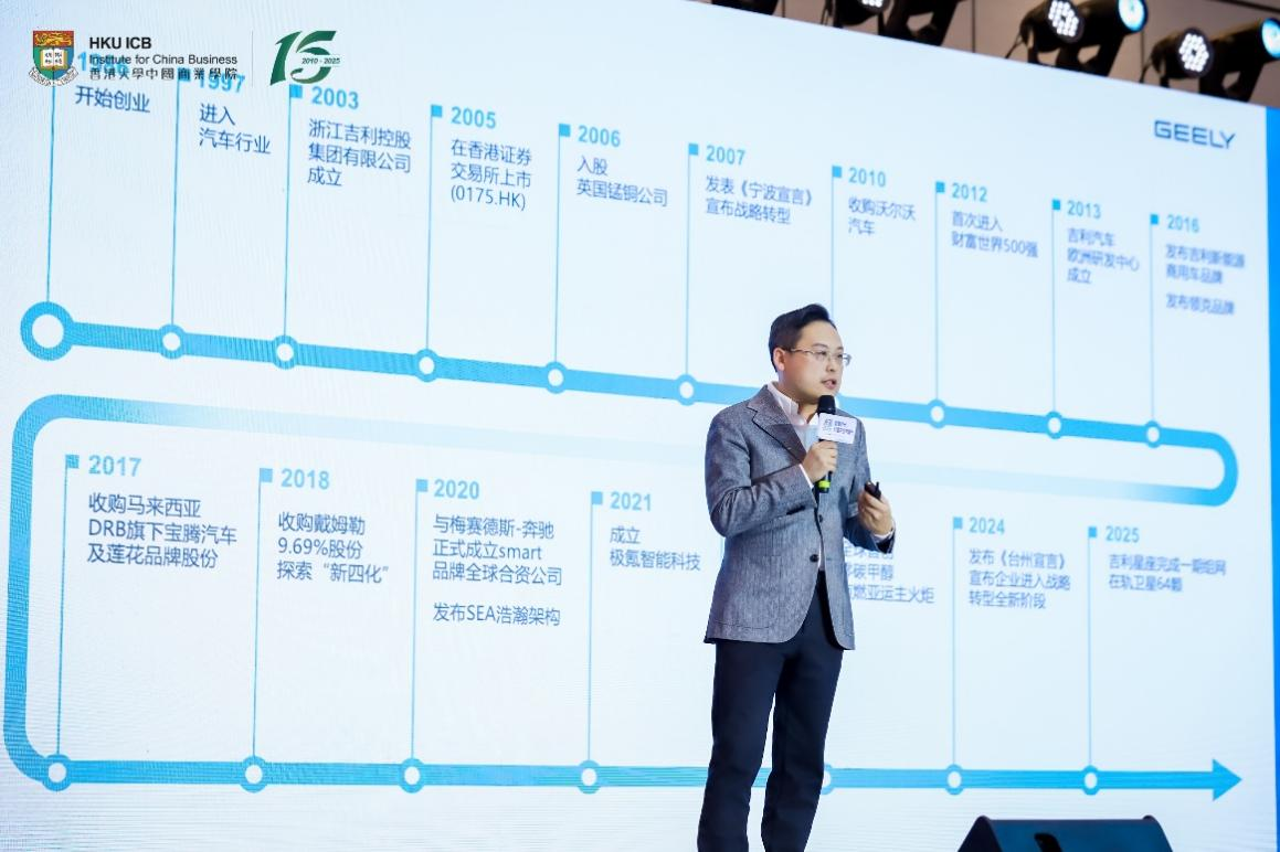 吉利远程新能源商用车集团副总裁、首席品牌官宋兆桓博士以《打造有全球影响力的智能电动出行科技公司》为题,系统回顾了吉利从民营造车到全球布局的跨越之路。他重点介绍了吉利在甲醇电动技术、天地一体化出行生态与全球协同研发方面的突破,并指出中国汽车工业已从“市场换技术”迈入“技术赢市场”的新阶段,吉利将通过“多元能源+智能生态”战略,持续推动中国智造走向世界。